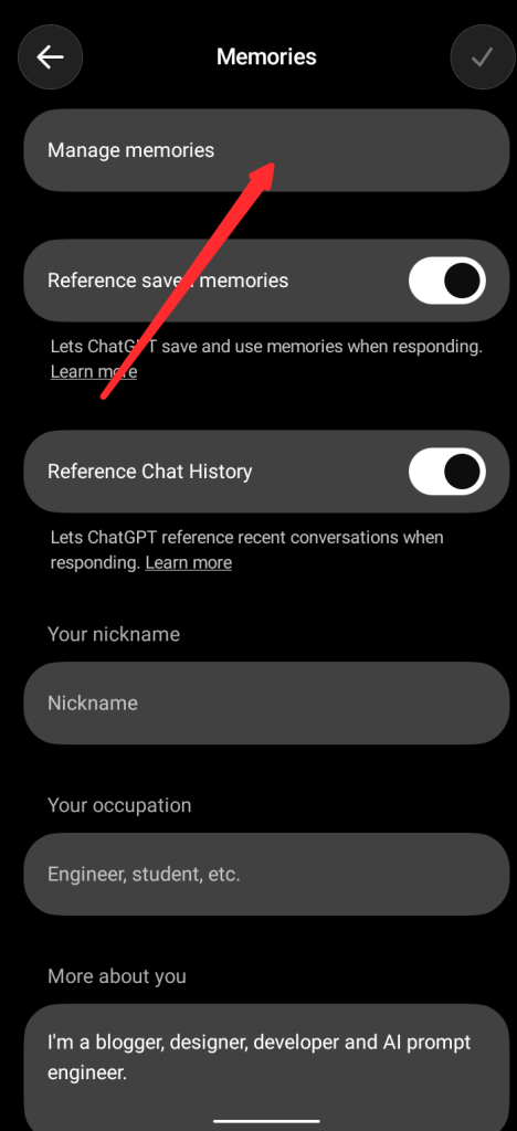 One of the screenshots i shared points to the app’s memory section, where users can manage saved memories. Some people believe removing older saved memories can help if they feel the experience has become cluttered.
