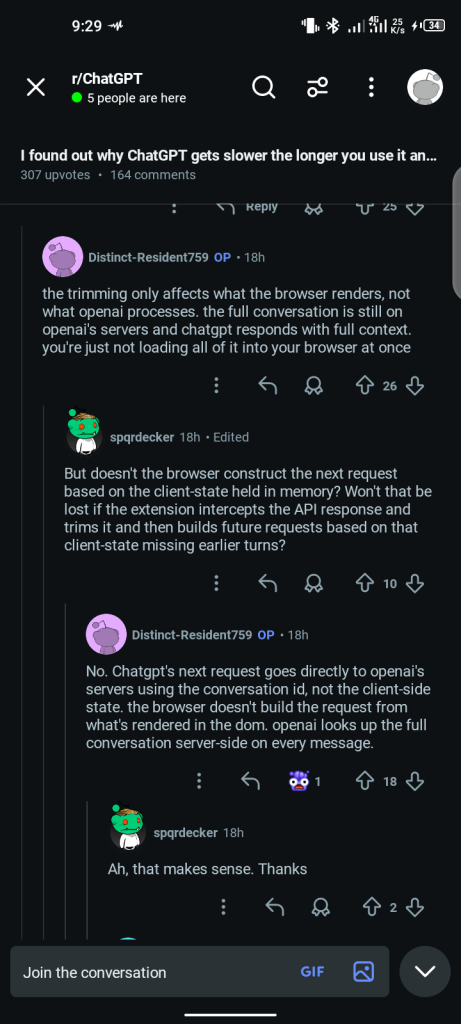 For a while, I assumed it was just one of those random internet problems. Maybe server traffic. Maybe poor connection. Maybe my phone acting up. But after seeing a Reddit discussion on the issue, reading through the arguments, and comparing it with my own experience, I realized something important. In many cases, the slowdown is not just about the server side of AI. It is also about how long conversations behave in real use, especially when the chat becomes very large.